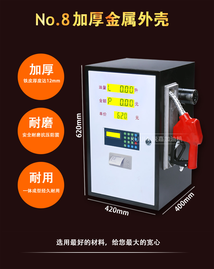 銳嘉柴油加油機(jī)902型是一款全自動 高精度的車載加油機(jī),本加油機(jī)采用全鋁合金渦輪流量計,可以打印小票,遙控加油,計量精度達(dá)0.3%,一年保修 終生維護(hù) 全國包郵。